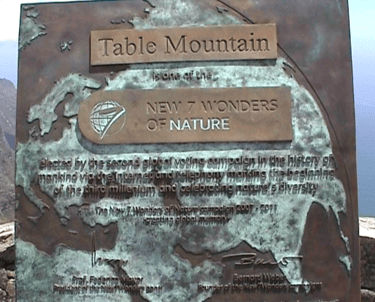 In December 2012, the plaque that proudly confirms Table Mountain's status as one of the New 7 Wonders of Nature was officially unveiled. The ceremony was followed by a massive celebration through the streets of Cape Town as part of the city's annual switch-on of the festive lights. Dancing, singing and a giant rotating Table Mountain float marked the historic occasion.